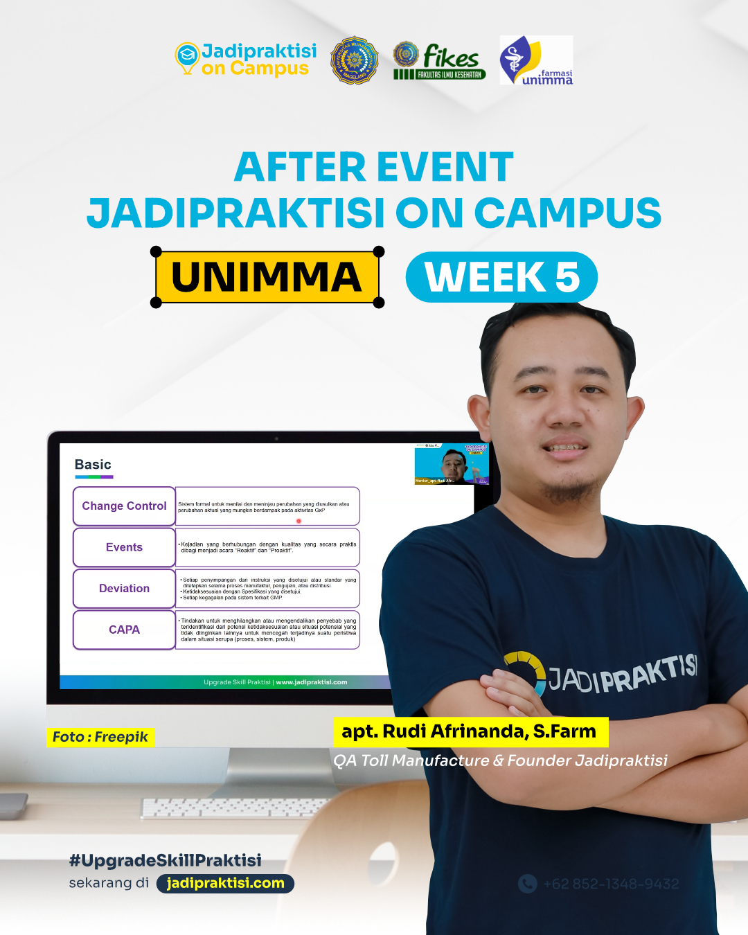 Jadipraktisi on Campus merupakan program untuk mempersiapkan Mahasiswa untuk masuk Dunia Kerja, dengan memberikan gambaran dunia kerja yang sesungguhnya bersama Praktisi yang Berkompeten!